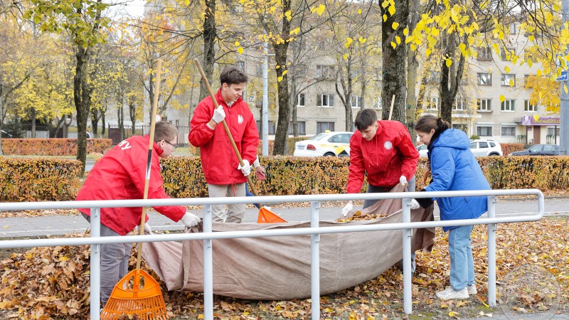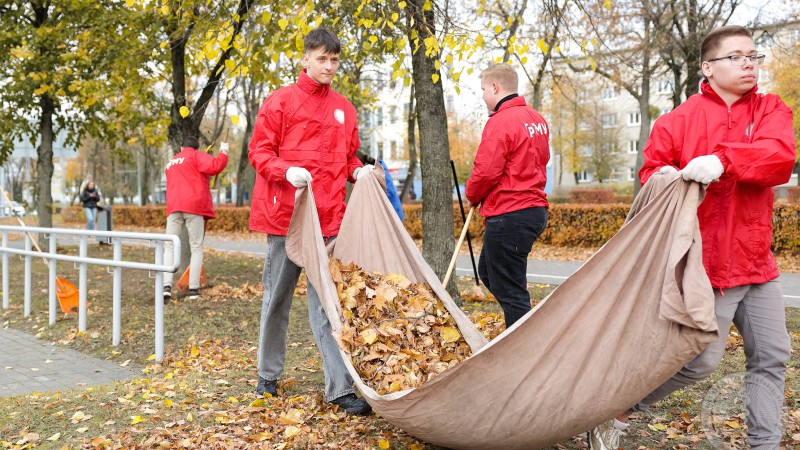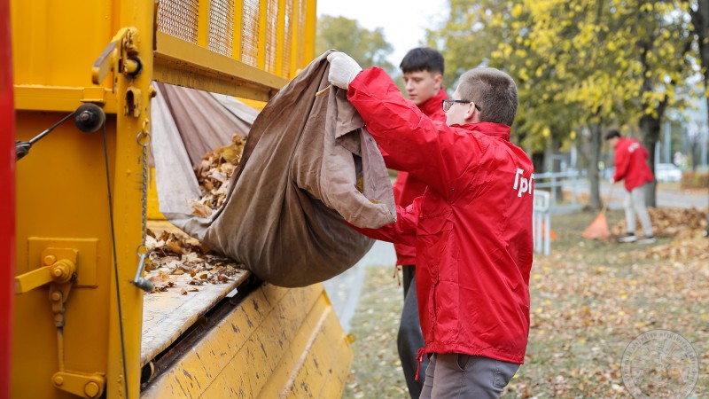 С заботой об окружающей среде. Студенты ГрГМУ приняли участие в «Трудовом десанте» по уборке листьев