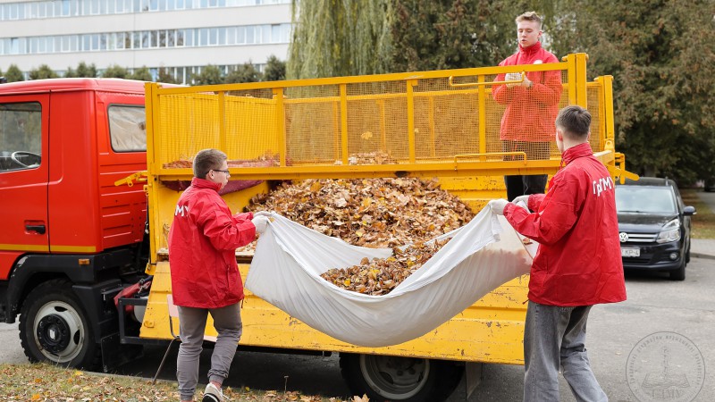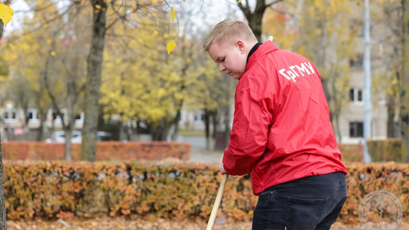 25 октября студенты лечебного факультета ГрГМУ приняли участие в «Трудовом десанте» по уборке листьев на прилегающей к университету территории.