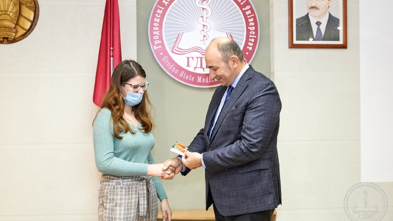 Во время открытого диалога состоялась и торжественная церемония вручения членских билетов студентам, которые недавно пополнили ряды первички ОО «БРСМ» ГрГМУ. К слову, перед началом мероприятия в фойе главного корпуса организовали праздничный сладкий стол и мини-концерт с живой музыкой.