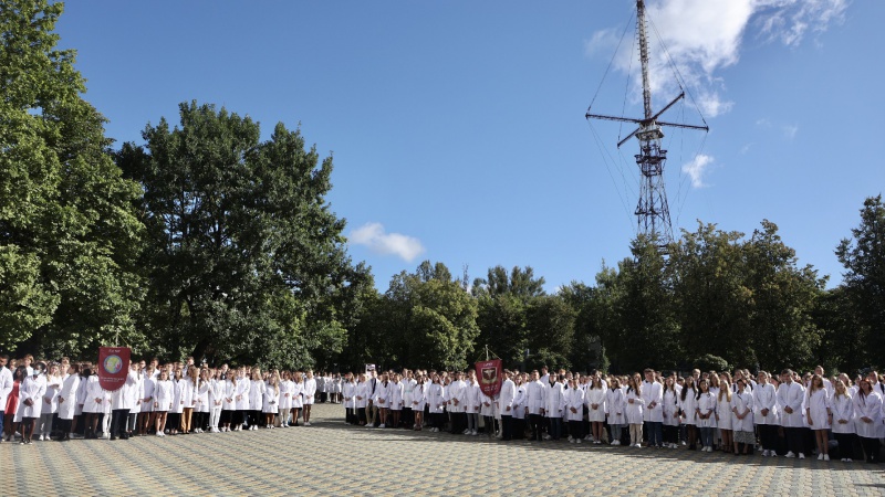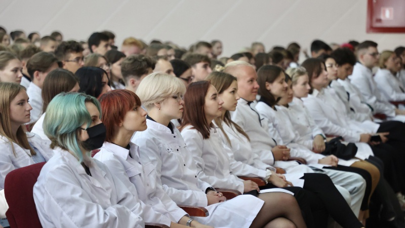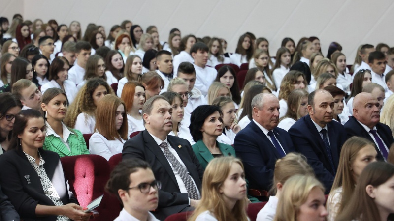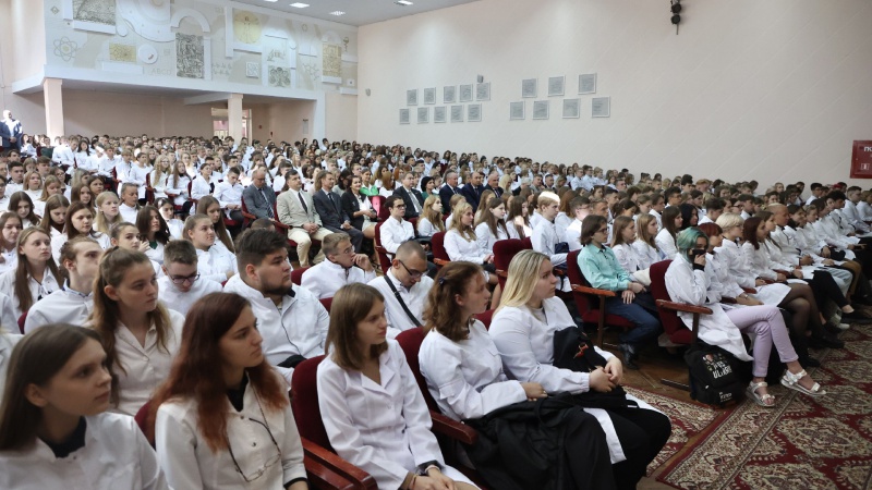 Владимир Степанович Караник, обращаясь к студентам медицинского вуза, отметил, что право надеть белый халат они заслужили в напряженной конкурсной борьбе.