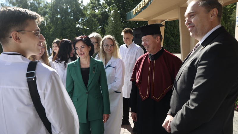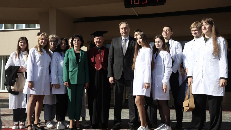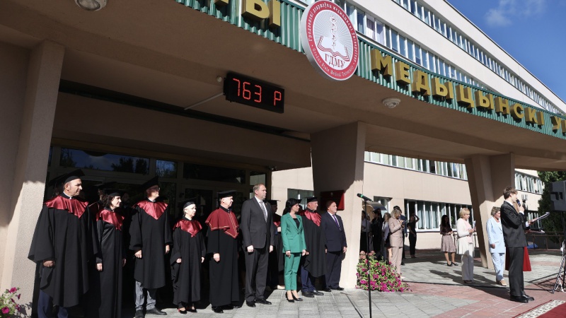 – Именно сегодня, вы, первокурсники, становитесь полноправными членами многотысячного сообщества медицинских работников. Позади серьезные вступительные испытания, в рамках которых вы доказали свой высокий уровень подготовки и получили право стать студентами Гродненского государственного медицинского университета, – отметил Владимир Степанович. – Гродненский медицинский университет имеет замечательную историю, современную материально-техническую базу, здесь очень сплоченный профессиональный профессорско-преподавательский коллектив. Выпускники нашего вуза трудятся во всех медицинских учреждениях страны, и именно они стоят на страже здоровья и жизни наших граждан. На протяжении 6 лет студентов ждут разные этапы: экзамены, яркие эмоции, взлеты и падения. А после учебы именно вы будете формировать лицо белорусской медицины и важно, чтобы вы нашли свое место в жизни, реализовали свои амбициозные планы, и главное, выросли патриотами своей страны, помнящими свою историю, готовыми приумножать ее и двигаться дальше.