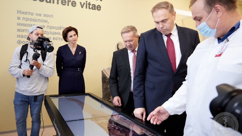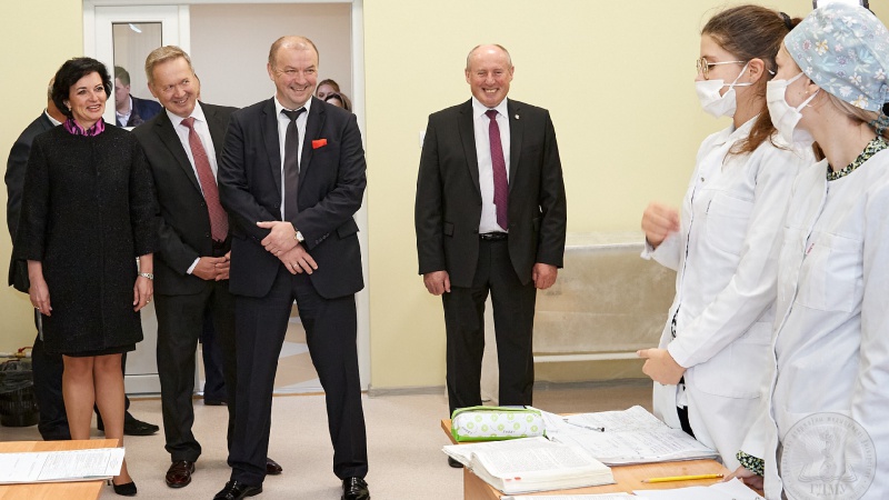 В подтверждение этому День знаний решили ознаменовать важным новосельем – в корпусе ГрГМУ по адресу Горького, 81 состоялось официальное открытие новых учебных площадей кафедры нормальной анатомии. Высокие гости и руководство университета ознакомились с результатом ремонтных работ, оснащением и комплектацией аудиторного фонда, а также посетили обновленную анатомическую экспозицию «Гродненская кунсткамера».