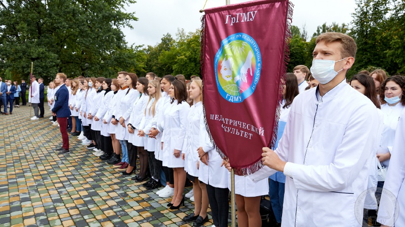 Первокурсников поприветствовала ректор Гродненского государственного медицинского университета Елена Николаевна Кроткова, а также почетные гости торжественного мероприятия – председатель Гродненского облисполкома Владимир Степанович Караник, заместитель министра здравоохранения Республики Беларусь Борис Николаевич Андросюк, председатель Гродненского областного Совета депутатов Игорь Георгиевич Жук, начальник Главного управления здравоохранения облисполкома Людмила Николаевна Кеда, председатель Гродненской областной организации Белорусского профсоюза работников здравоохранения Владислав Робертович Голяк.