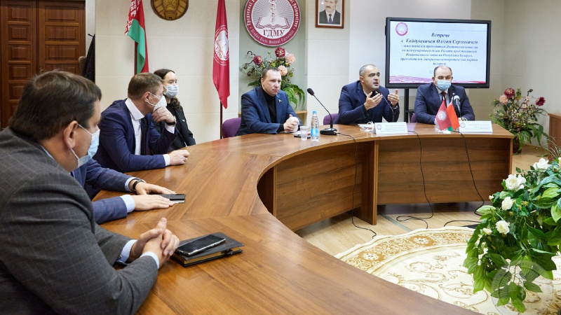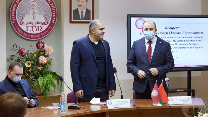 Олег Сергеевич Гайдукевич – заместитель председателя Постоянной комиссии по международным делам Палаты представителей Национального собрания Республики Беларусь, председатель Либерально-демократической партии Беларуси. Встречу с ним инициировали студенты нашего университета, в частности, студент 6 курса медико-психологического факультета Владислав Приёмко. Он пригласил Олега Сергеевича посетить Гродненский государственный медицинский университет. Депутат на предложение студента откликнулся.