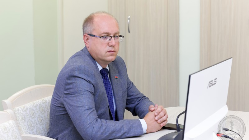 Оnline-собрание с руководством Гродненского государственного медицинского университета прошло сегодня. На встрече присутствовали первый проректор Андрей Викторович Болтач, декан медико-диагностического факультета Сергей Викторович Глуткин, декан медико-психологического факультета Светлана Леонидовна Бойко, декан лечебного факультета Виктор Валентинович Кудло, декан педиатрического факультета Андрей Леонидович Гурин, а также начальник студенческого городка Наталия Александровна Козловская.