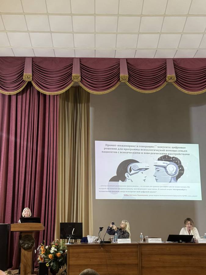 Завершением научной программы семинара стало выступление декана медико-психологического факультета, к.м.н., доцента Светланы Леонидовны Бойко. В своем докладе «Промпт-инжиниринг и генерация IT-контента: цифровые решения для программы психологической помощи семьям пациентов с психическими и поведенческими расстройствами» она раскрыла перспективы использования искусственного интеллекта для создания персонализированных программ поддержки.