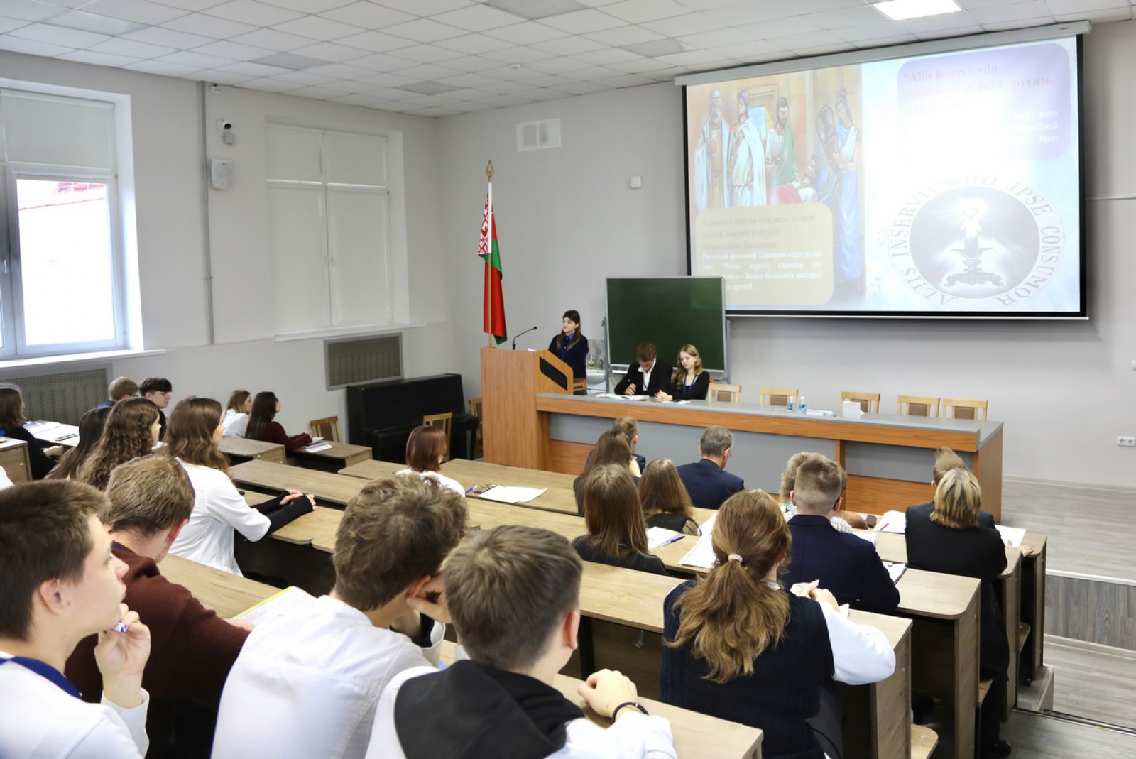 Студенты педиатрического факультета Гродненского государственного медицинского университета Виринея Юрьевна Полярович и Платон Андреевич Антонович представили результаты научного исследования «Особенности возникновения и течения острой воспалительной демиелинизирующей полинейропатии у детей и подростков», выполненного под руководством доцента кафедры неврологии и нейрохирургии Евгения Васильевича Онегина.