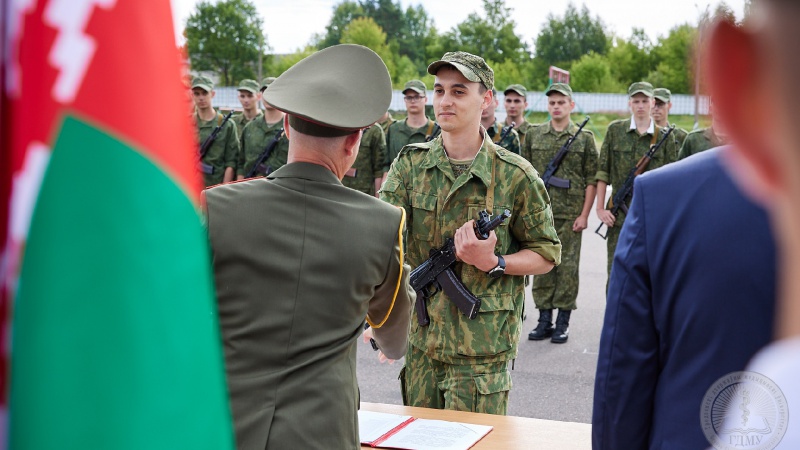 С этим важным и долгожданным событием поздравили юношей проректор по воспитательной работе Гродненского государственного медицинского университета Игорь Петрович Богданович и начальник военной кафедры, полковник м/с Владимир Александрович Новоселецкий. Радость торжественного момента с молодыми людьми также разделили родители, родственники и друзья.