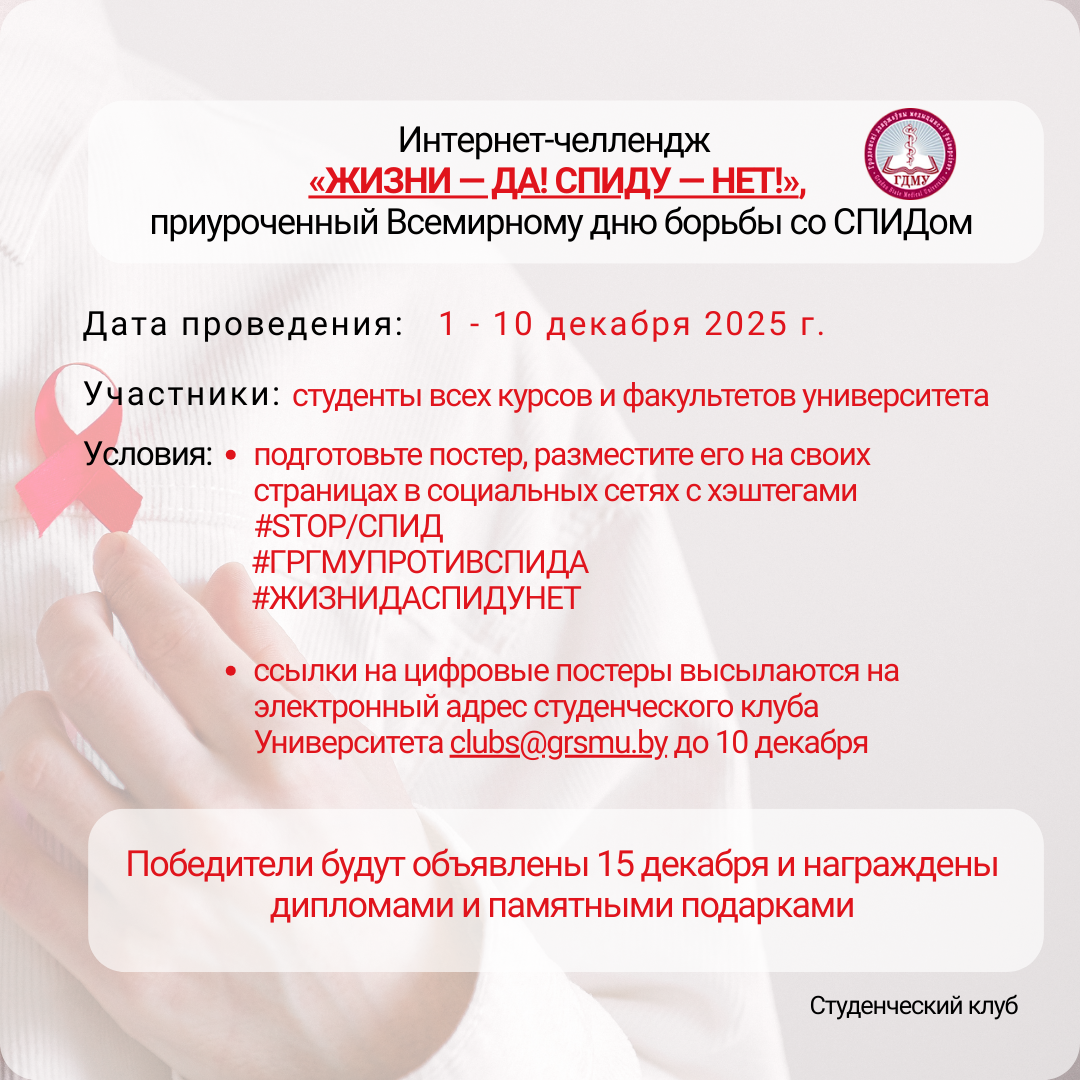Студклуб ГрГМУ объявляет интернет-челлендж «ЖИЗНИ – ДА! СПИДУ – НЕТ!»