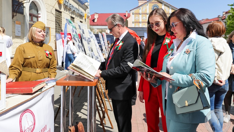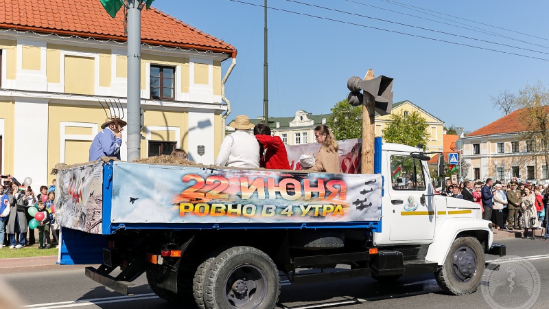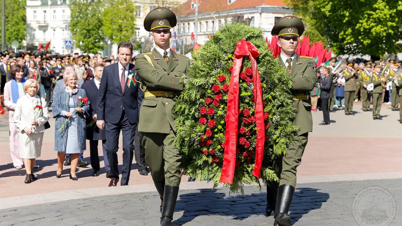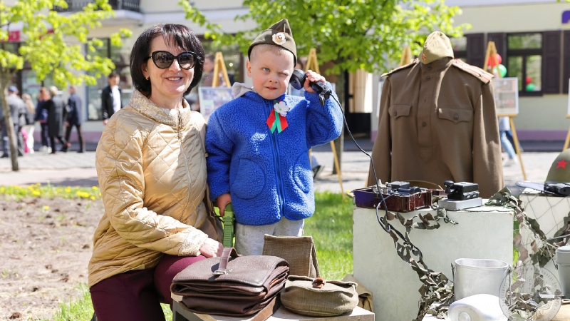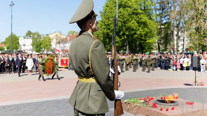 В Гродно в День Победы основные торжества развернулись сразу на трех площадках: Ленина, Советская, Тызенгауза. Параллельно на улице Советская работала выставка учреждений высшего образования «От имени жизни, от имени сердца» и исполнялись концерты творческих коллективов города.