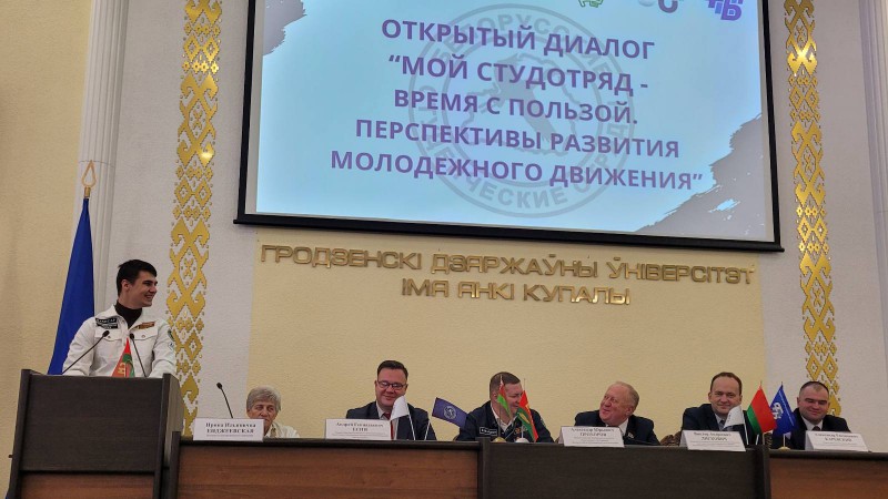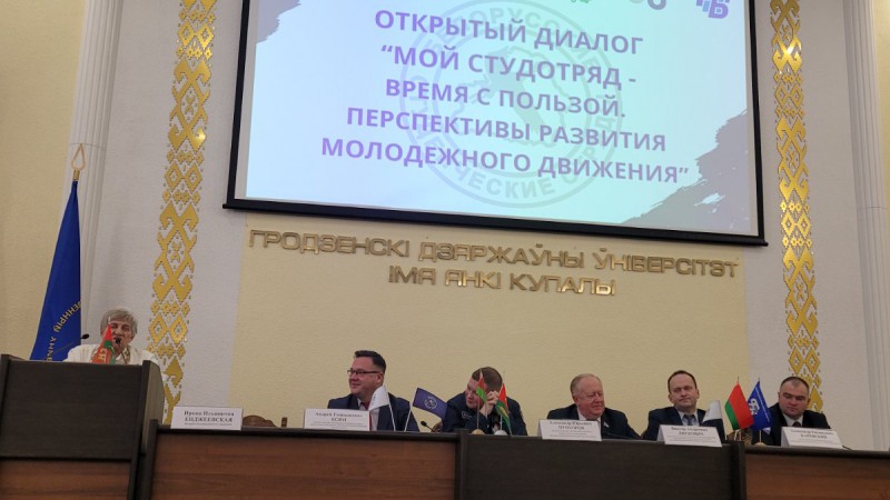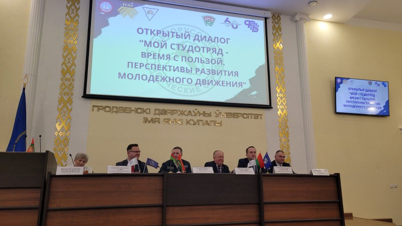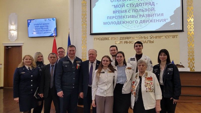В год 60-летия белорусского студотрядовского движения в ГрГУ им Янки Купалы состоялся открытый диалог "Мой студотряд - время с пользой, перспективы развития молодежного движения".