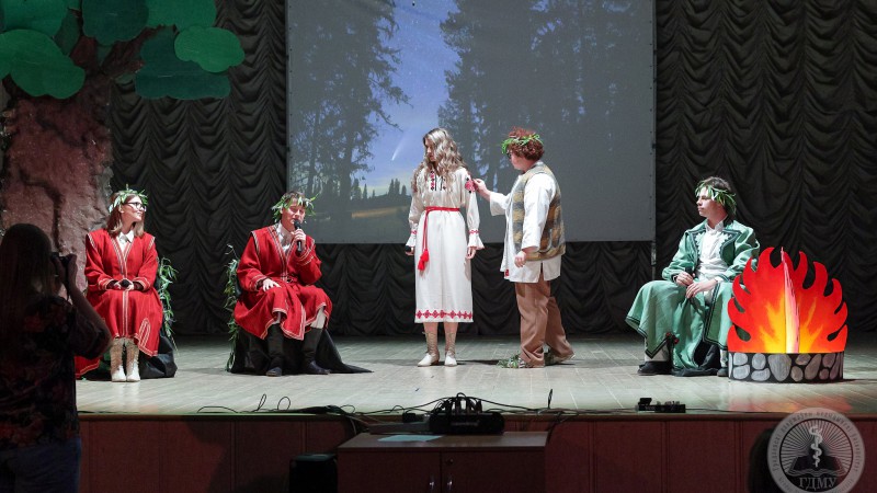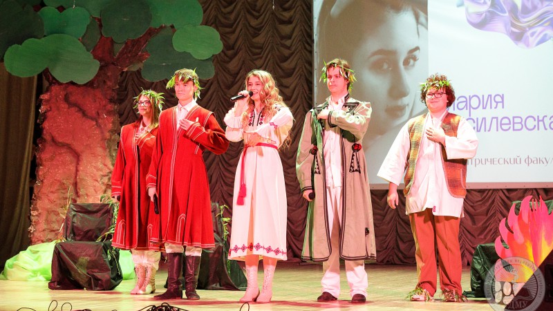 Второй на сцену вышла Мария Василевская. В своей визитке конкурсантка использовала славянский мотивы и в миниатюрной постановке зал окунулся в ночь Ивана Купалы – все вместе искали папараць-кветку, которую по легенде мог отыскать только самый лучший студент медицинского вуза. С этой миссией Мария справилась на «отлично».