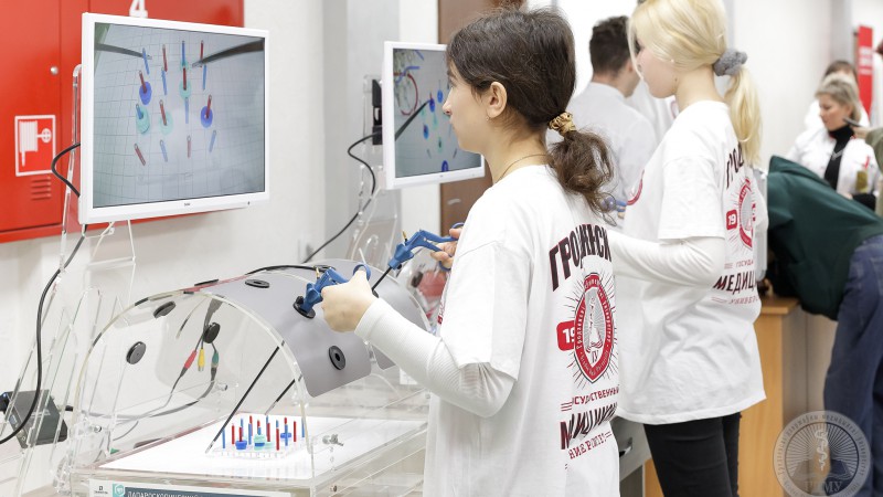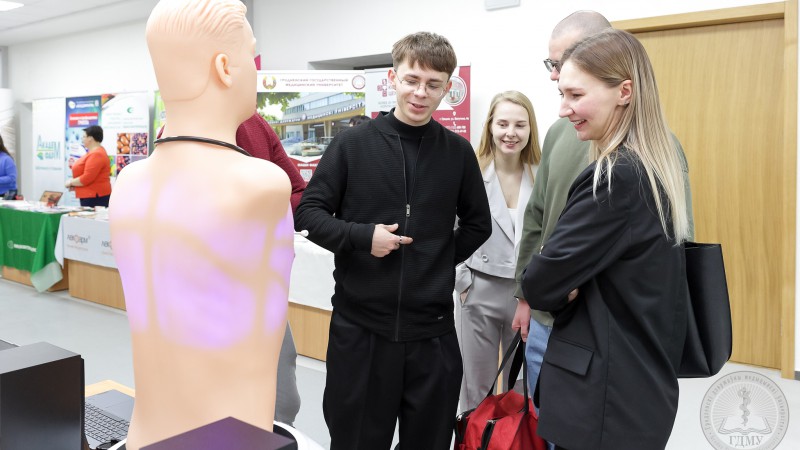 Площадка ГрГМУ сегодня также принимала огромное количество посетителей. Каждый желающий смог попробовать провести сердечно-легочную реанимацию на манекенах, используемых для обучения студентов. Проверить свои силы на тренажере для лапароскопии – оборудование подготовил и представил симуляционно-аттестационный центр ГрГМУ. Также гости смогли ознакомиться с научными, инновационными разработками вуза, библиотечным фондом и патентами университета.