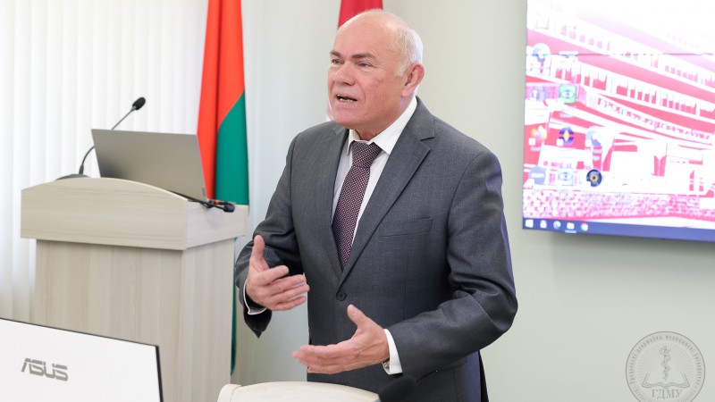 Заведующий кафедрой медицинской реабилитаций Сергей Сергеевич Василевский познакомил участников Школы не только с программой, но и с заслуженными сотрудниками кафедры и университета, которые выступят перед ребятами.