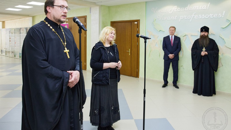 После открытия выставки студенты смогли лично ознакомиться с представленной экспозицией и задать вопросы священникам.
