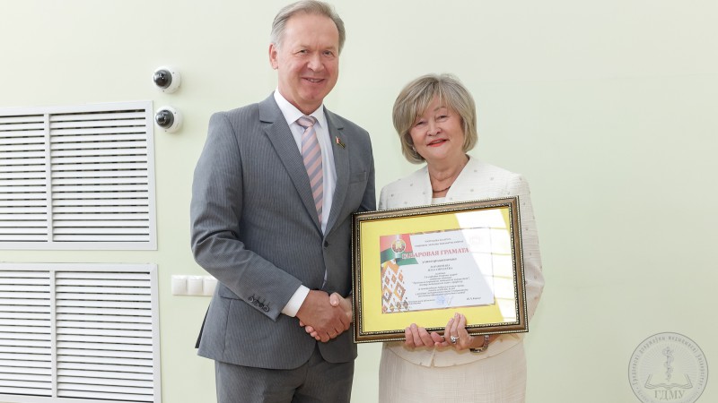К 70-летнему юбилею почетными грамотами Гродненского областного исполнительного комитета и Главного управления здравоохранения Гродненского областного исполнительного комитета награждена заведующий 2-й кафедрой детских болезней Нэлла Сергеевна Парамонова.