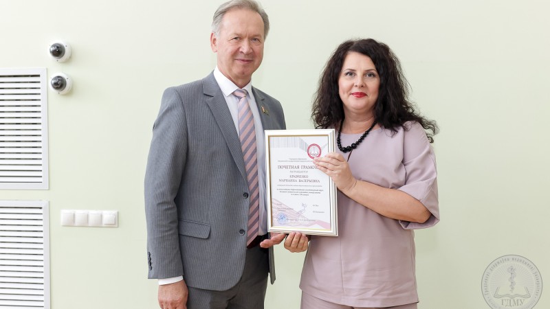 К 50-летнему юбилею почетной грамотой учреждения образования «Гродненский государственный медицинский университет» награждена специалист деканата медико-диагностического факультета Марианна Валерьевна Кравченко.