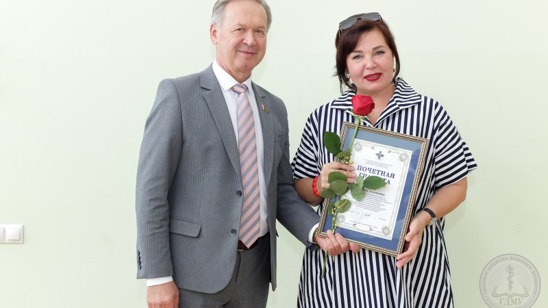 Почетной грамотой Гродненской областной организации Белорусского профсоюза здравоохранения награждены старший преподаватель кафедры фтизиопульмонологии Андрей Владимирович Циунчик и старший преподаватель кафедры пропедевтики внутренних болезней Жанна Зеноновна Швед.