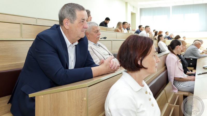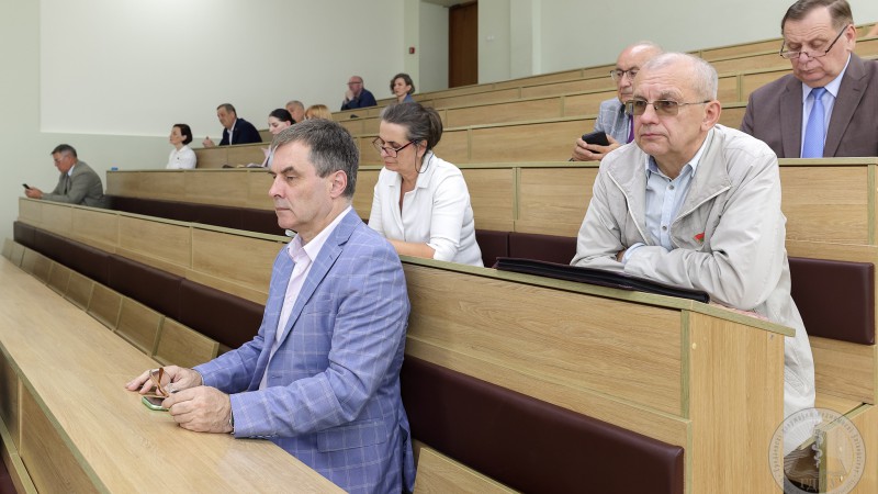 В рамках заседания совета университета присутствующих ждал сюрприз – видеопоздравление сотрудникам и студентам в канун нового учебного года от профессора Ильи Самуиловича Гельберга.