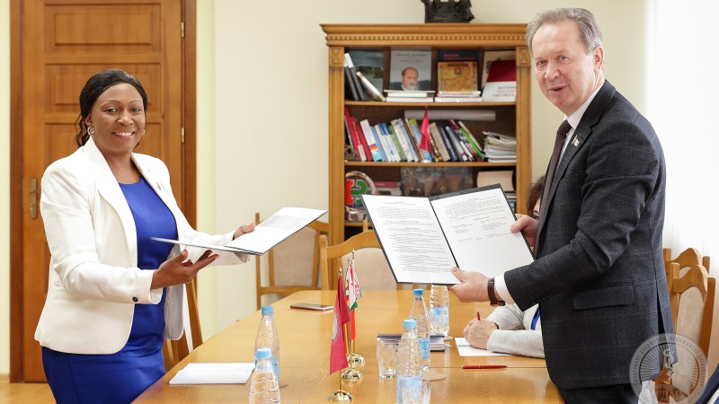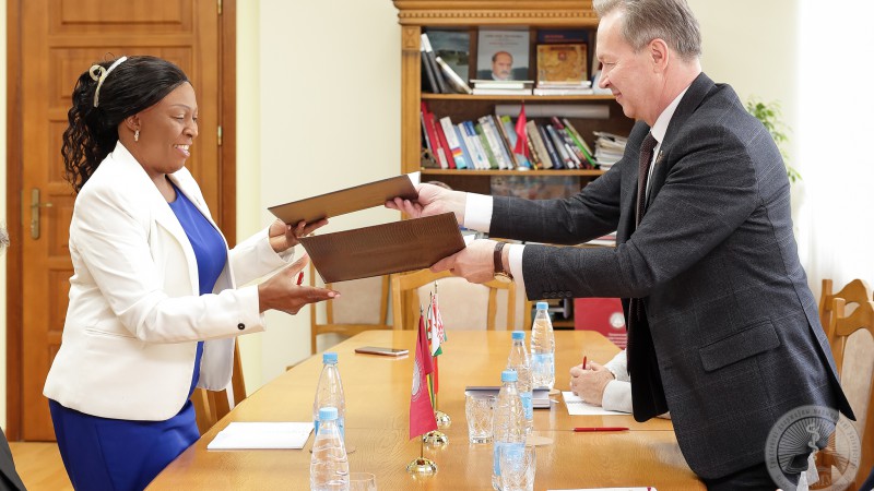 В ходе переговоров Игорь Георгиевич подчеркнул, что руководители наших стран по итогам переговоров в Минске, Президент Республики Беларусь Александр Лукашенко и Президент Зимбабве Эммерсон Мнангагва, подписали международные документы о развитии сотрудничества в различных сферах. Также ректор поздравил Маурин с Днём Независимости Республики и пожелал народу Зимбабве процветания.