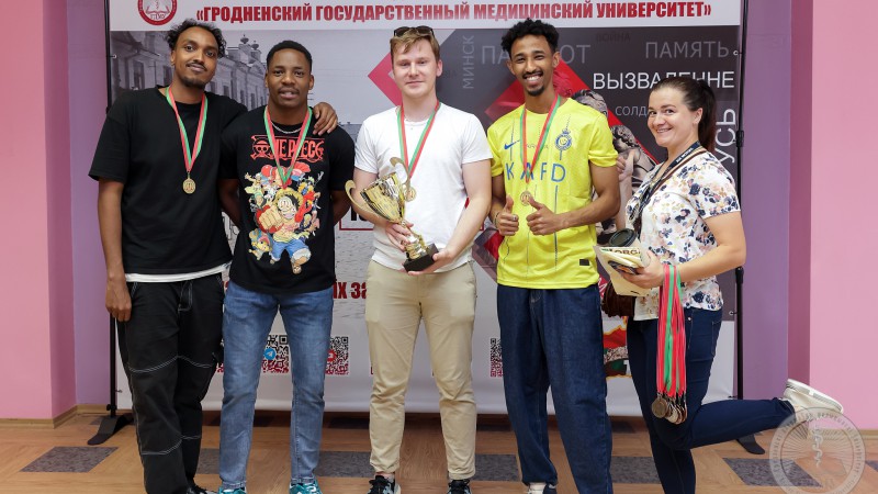 По итогам соревнований грамотой учреждения образования «Гродненский государственный медицинский университет» в номинации «Круглогодичная спартакиада среди студентов, проживающих в общежитиях» награждены: