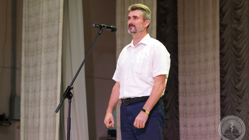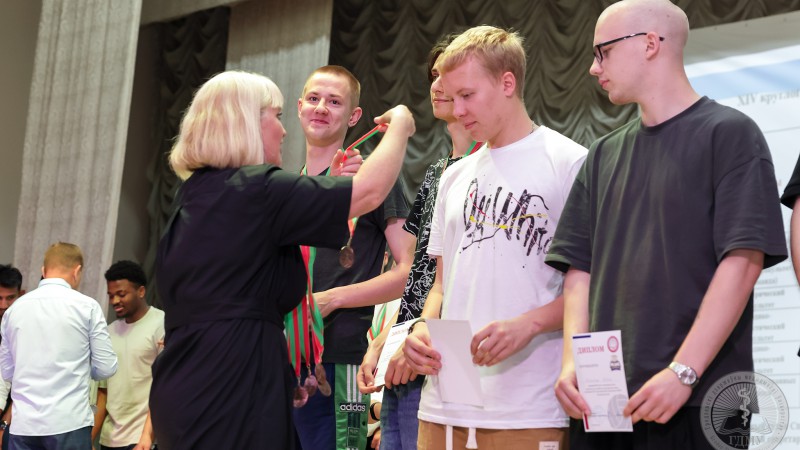 После вручения заслуженных спортивных наград победителей и призеров XIV круглогодичной спартакиады среди факультетов поздравили музыкальной композицией солисты студии эстрадного пения «MEDиALL».
