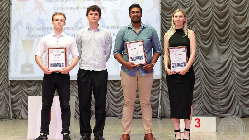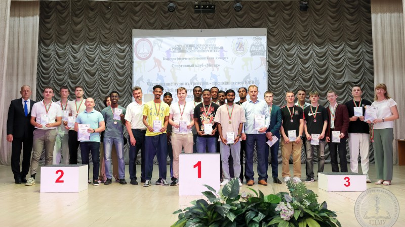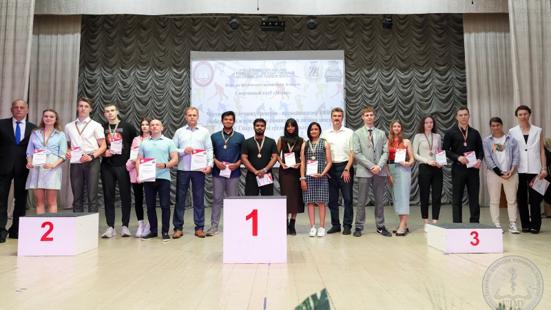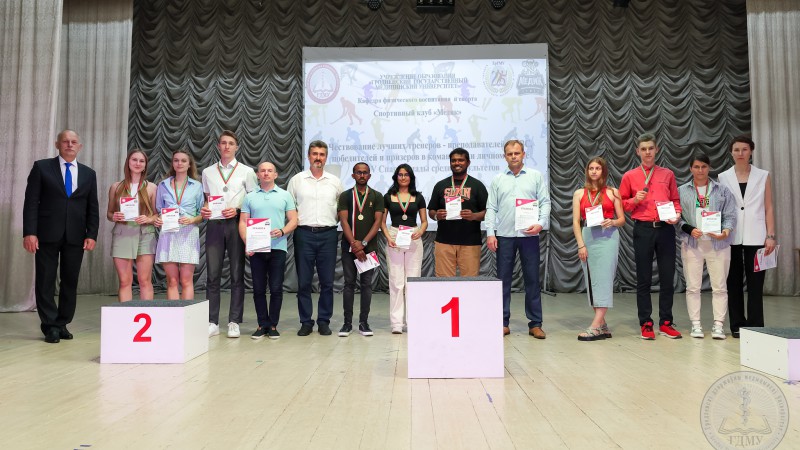 30 мая состоялась торжественная церемония чествования лучших тренеров – преподавателей кафедры физического воспитания и спорта, победителей и призеров XIV спартакиады среди факультетов в 2023-2024 учебном году. В торжественной церемонии приняли участие деканы факультетов, заместители деканов по воспитательной работе, зав. кафедрой физического воспитания и здоровья, начальник спортклуба «Медик».