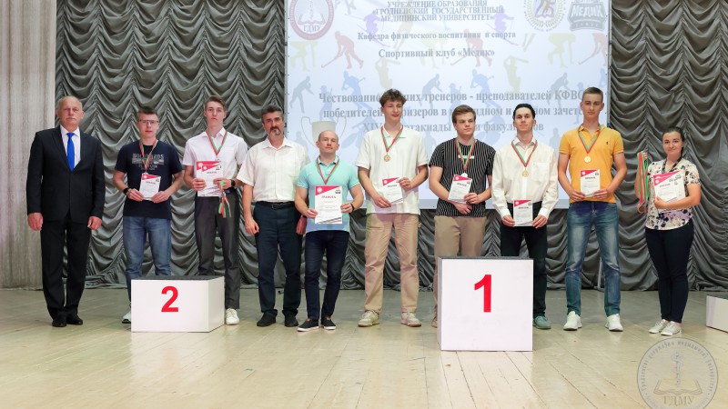 Далее состоялось награждение команд-победителей и призеров XIV круглогодичной спартакиады среди факультетов Гродненского государственного медицинского университета.