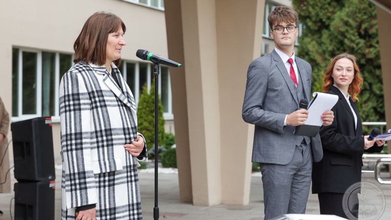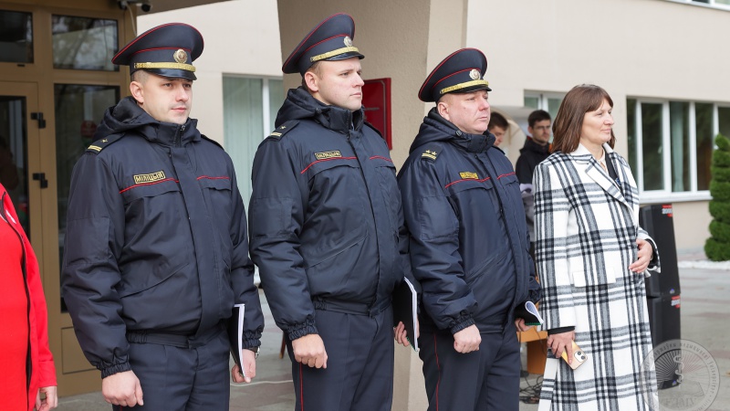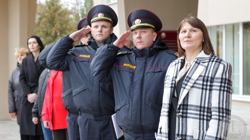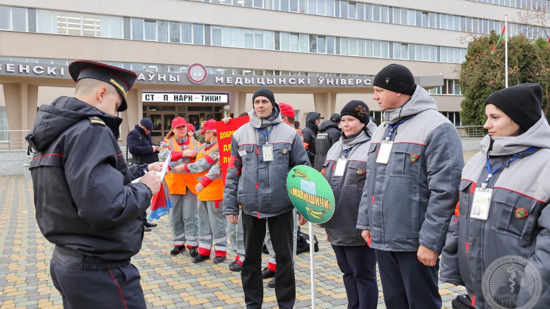 На главной площади ГрГМУ прошло торжественное построение участников смотра-конкурса добровольных дружин, на котором присутствовали представители организационного комитета и жюри конкурса: Степаненко Ирина Брониславовна, заместитель начальника главного управления идеологической работы Гродненского областного исполнительного комитета; Жук Игорь Георгиевич, профессор, ректор учреждения образования «Гродненский государственный медицинский университет»; Авдей Павел Казимирович, заместитель начальника отдела охраны правопорядка, управления охраны правопорядка и профилактики управления внутренних дел Гродненского областного исполнительного комитета; Косицкий Петр Игоревич, заместитель заведующего отделом проектной деятельности Гродненского областного комитета общественного объединения «Белорусский республиканский союз молодежи»; Павленкович Елена Владимировна, специалист по обучению Гродненской областной организации Белорусского Красного Креста.
