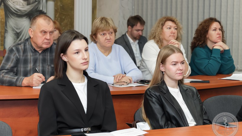 На встрече присутствовали профессоры кафедры акушерства и гинекологии №1 Леонид Семенович Александров, Тея Амировна Джебладзе, Владимир Михайлович Зуев и доцент кафедры акушерства и гинекологии №1 Юрий Васильевич Чушков. Со стороны нашего вуза гостей приветствовали заведующий кафедрой акушерства и гинекологии Людмила Витольдовна Гутикова, заместитель декана по идеологической и воспитательной работе медико-психологического факультета Юлия Викторовна Кухарчик, доцент кафедры акушерства и гинекологии Елена Петровна Ганчар.