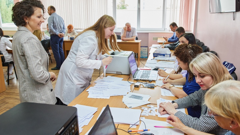Государственный экзамен сегодня сдают студенты лечебного и педиатрического факультетов. Форма сдачи классическая: студент вытягивает билет, готовится и отвечает экзаменатору.
