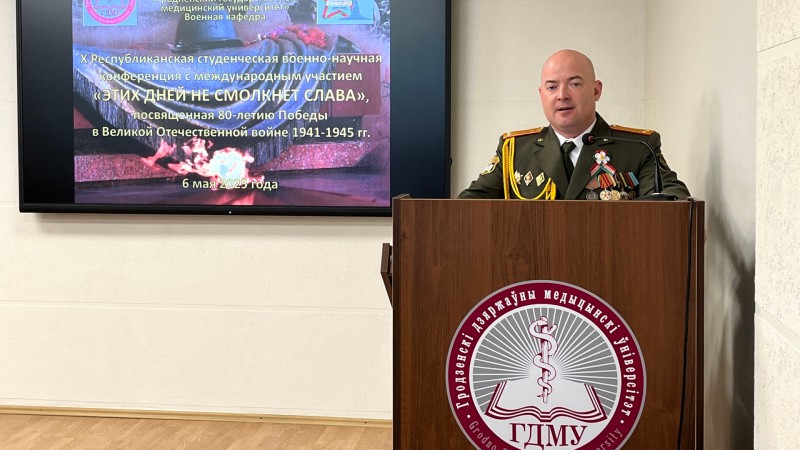 Сегодня в Гродненском медуниверситете проходит юбилейная X студенческая военно-научная конференция «Этих дней не смолкнет слава», посвященная 80-летию Победы в Великой Отечественной войне.