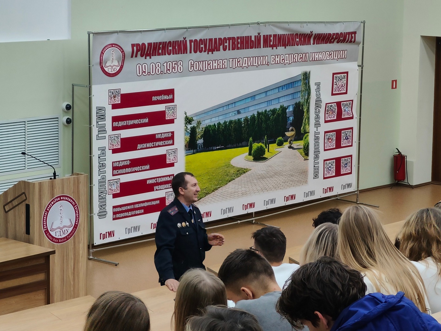 23 октября в университете состоялся единый информационный час для студентов 1-4 курсов при участии начальника инспекции по делам несовершеннолетних РОВД Ленинского района г.Гродно Олега Ивановича Андалы.