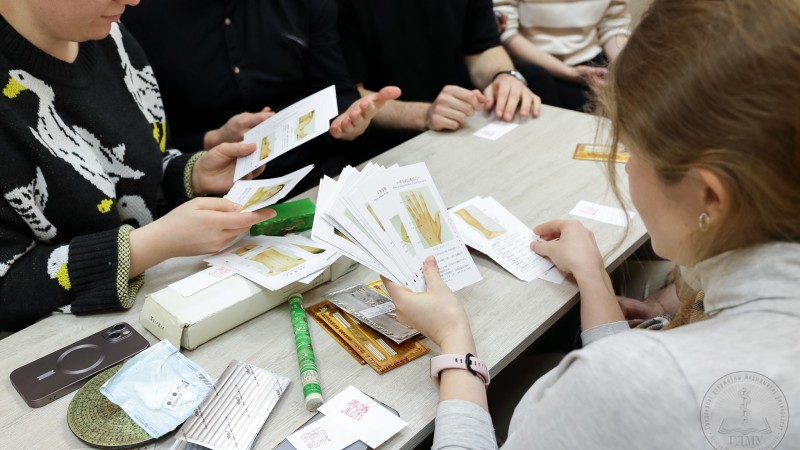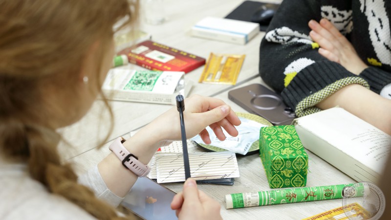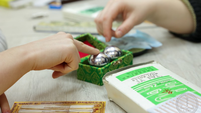 Начался мастер-класс со знакомства с предметами, которые используются в традиционной китайской медицине. Это, конечно же, акупунктурные иглы, лекарственные травы, скребки из нефрита, сигары из полыни и многое другое. Сергей Сергеевич подробно рассказал о каждом предмете и его применении. К слову, каждый желающий смог потрогать, подержать и чуть-чуть опробовать их на себе.