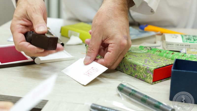 Еще один интересный предмет – китайская печать врача Сергея Сергеевича. Каждому из ребят она была на память поставлена на листике. Конечно же, и печати имеют свою особенность – в Китае они красного цвета и больше наших примерно в 2,5 раза.