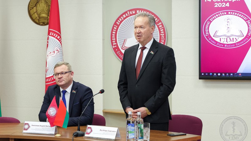 В начале встречи ректор Гродненского государственного медицинского университета, член Совета Республики Национального собрания Игорь Георгиевич Жук отметил, что руководство области и города, представители депутатского корпуса регулярно встречаются со студентами, профессорско-преподавательским составом и сотрудниками вуза, и во время встреч каждый из нас может услышать актуальную информацию и задать волнующие вопросы.