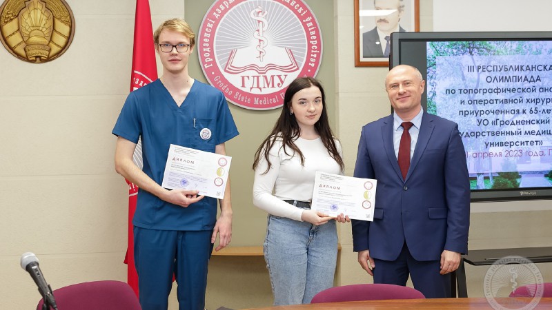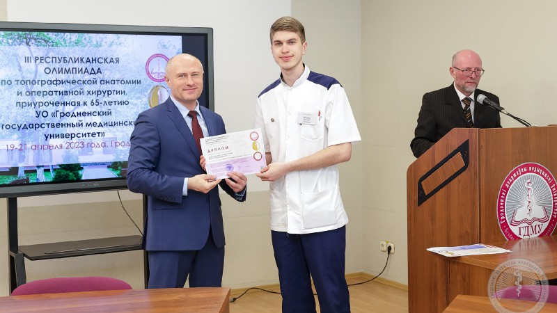 III Республиканская олимпиада по оперативной хирургии и топографической анатомии прошла на базе Гродненского государственного медицинского университета с 19 по 21 апреля. Участие в ней приняли 4 команды всех медицинских вузов страны. Команда состояла из 6 студентов 4-5 курсов.