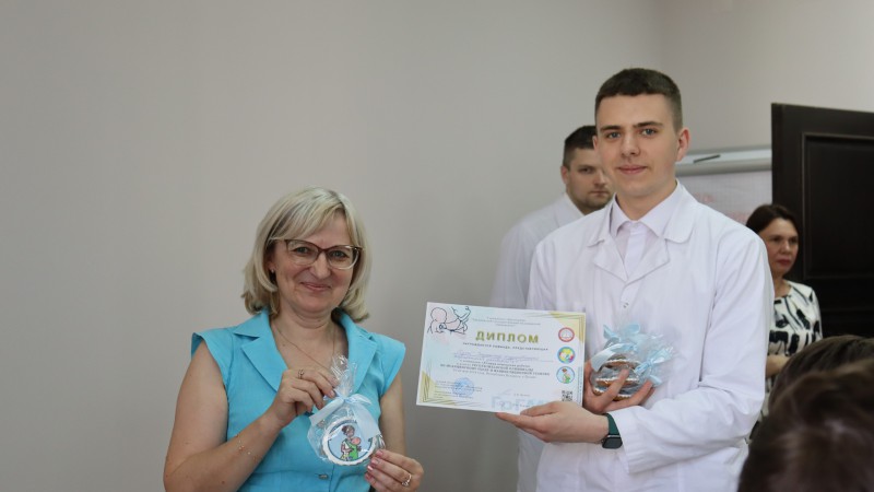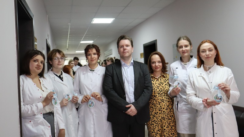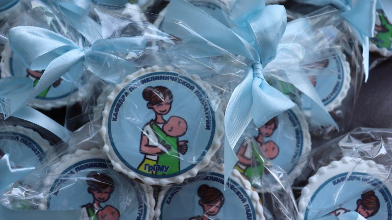 После церемонии награждения, обсуждения олимпиады и обмена контактами конкурсантов ждал еще необычный сладкий сюрприз от кафедры поликлинической педиатрии: все участники получили пряники с логотипом кафедры на память об олимпиаде.