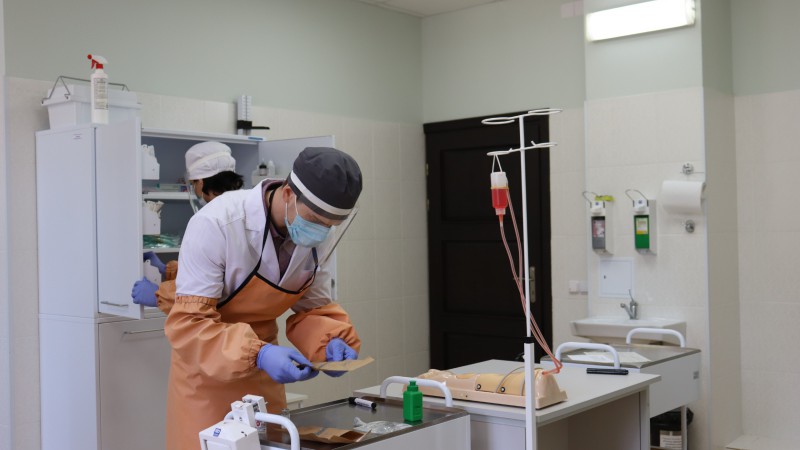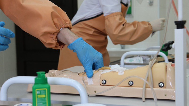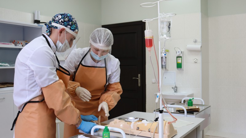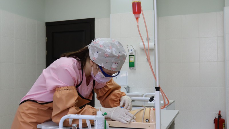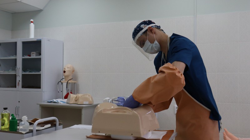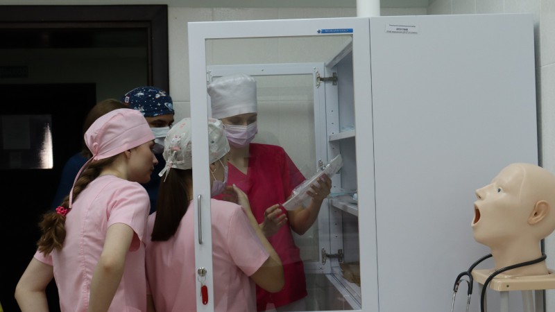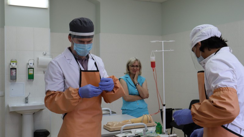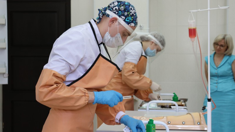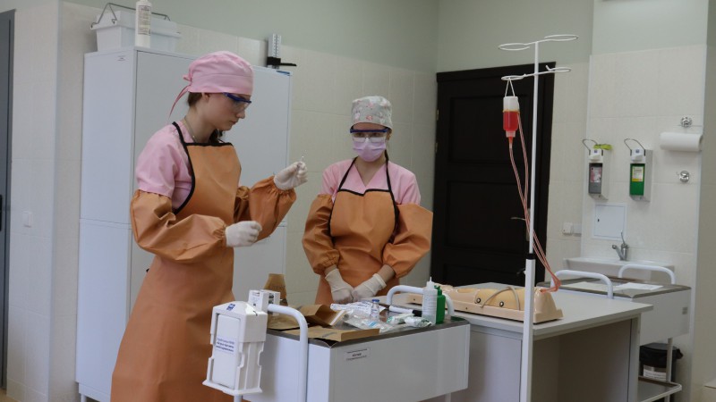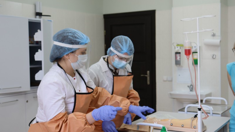 Практический тур проходил на базе симуляционно-аттестационного центра университета и представлял собой демонстрацию практических навыков по медицинскому уходу и манипуляционной технике с использованием элементов объективного структурированного клинического экзамена (ОСКЭ).