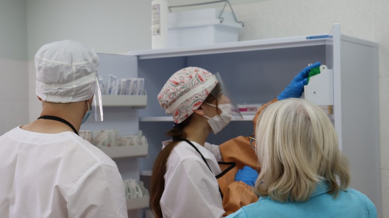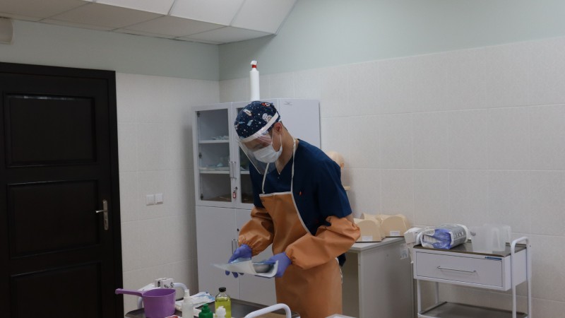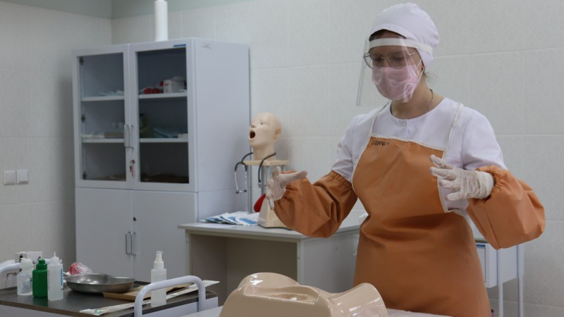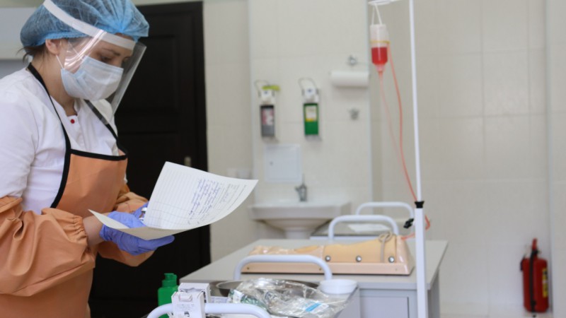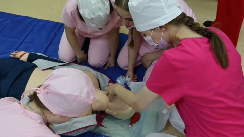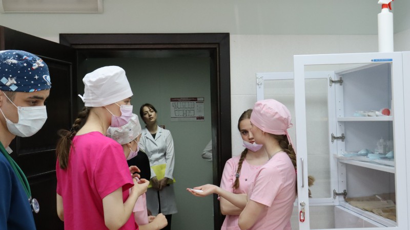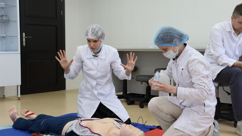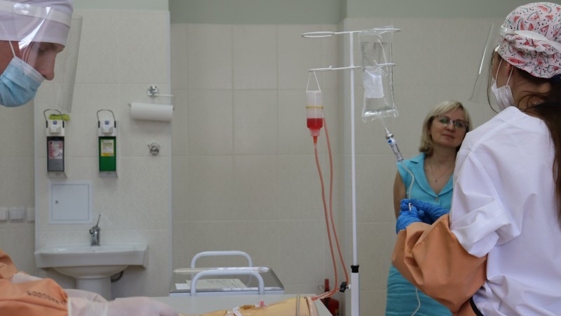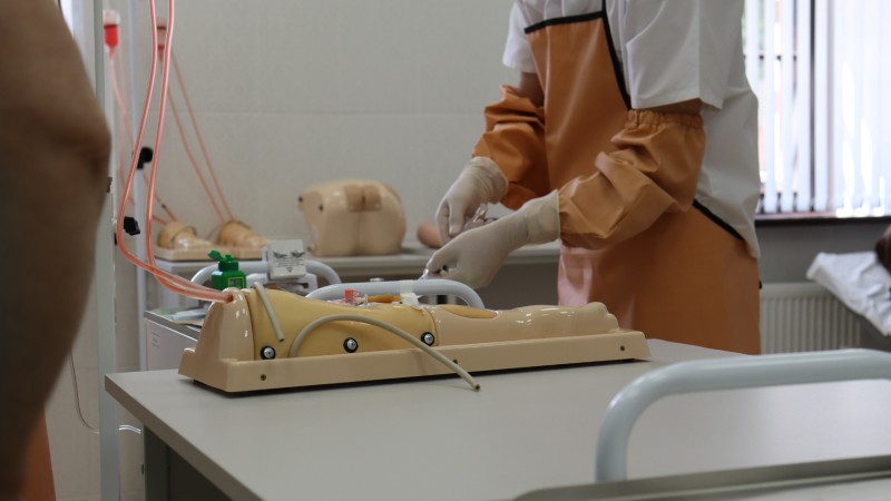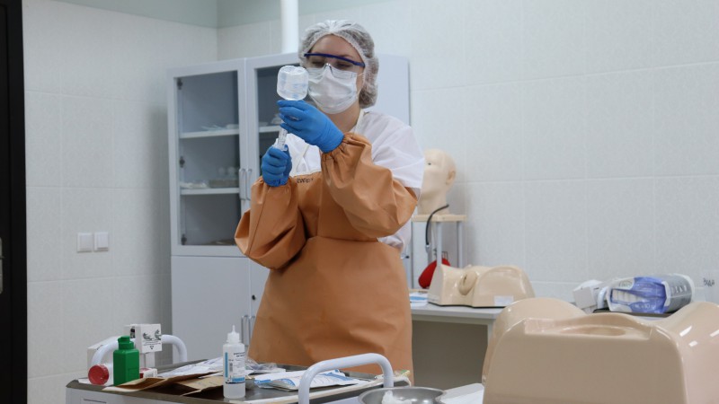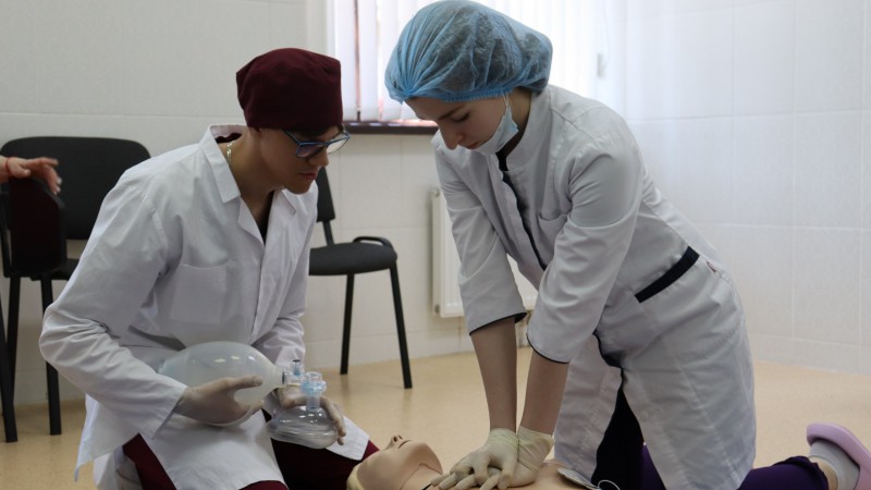 Практический тур проходил на базе симуляционно-аттестационного центра университета и представлял собой демонстрацию практических навыков по медицинскому уходу и манипуляционной технике с использованием элементов объективного структурированного клинического экзамена (ОСКЭ).