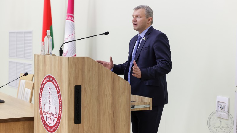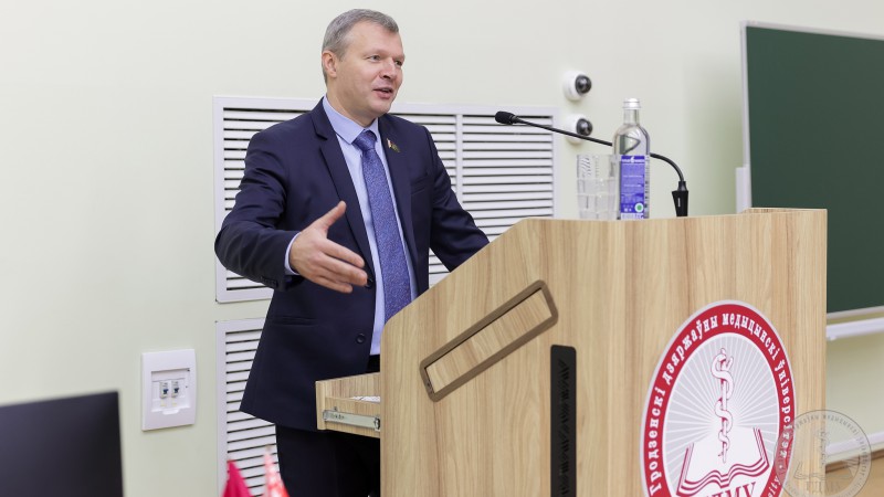 Студенты 4 курса педиатрического, медико-психологического и медико-диагностических факультетов ГрГМУ получили уникальную возможность задать волнующие их вопросы в рамках диалоговой площадки «Молодежь для Беларуси» с председателем РОО «Белая Русь», Белорусской партии «Белая Русь», депутатом Палаты представителей Национального собрания Республики Беларусь, доктором философских наук, профессором Олегом Александровичем Романовым. Мероприятие традиционно прошло в формате оживлённого открытого диалога, став центром притяжения для всех небезразличных к светлому будущему нашего государства.
