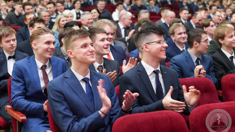 От ОО «БРСМ» сотрудников университета и студентов поздравил первый секретарь Гродненского городского комитета Артем Викторович Макаревич. Далее состоялся праздничный концерт, подготовленный студентами Гродненского медуниверситета.
