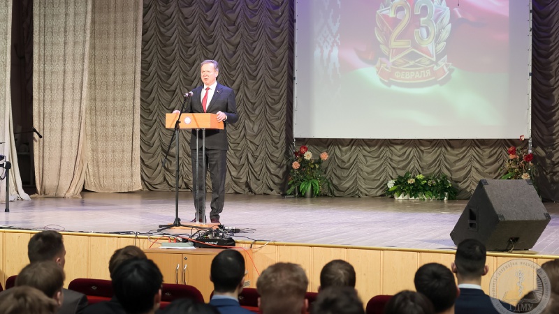 Начальник военной кафедры, полковник м/с Владимир Александрович Новоселецкий обращаясь к присутствующим торжественного собрания подчеркнул, что праздник широко отмечается в нашей стране. В этом году также отмечается 105 лет со дня формирования Вооруженных Сил Республики Беларусь.