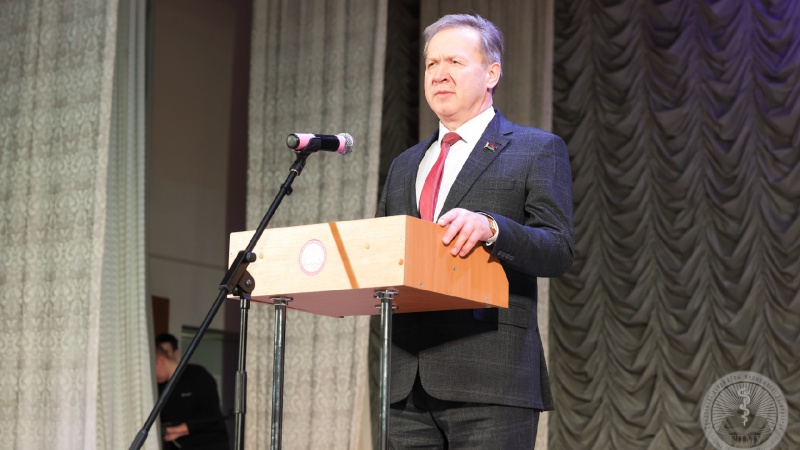 В Гродненском государственном медицинском университете прошло торжественное собрание, посвященное Дню защитников Отечества и Вооруженных Сил Республики Беларусь. С приветственным словом к гостям праздника обратился ректор Игорь Георгиевич Жук.