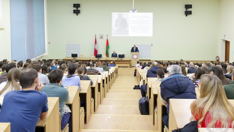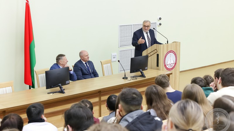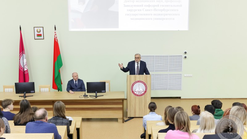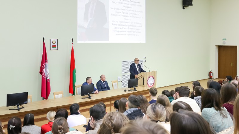 Сегодня в Гродненском государственно медицинском университете состоялась открытая лекция Михаила Дмитриевича. Тема лекции: «Огнестрельная рана: организация, клиника, технологии». В начале встречи профессор рассказал присутствующим о своем жизненном пути.