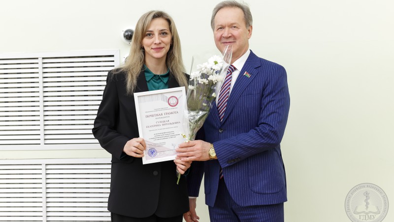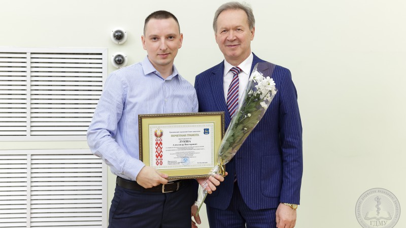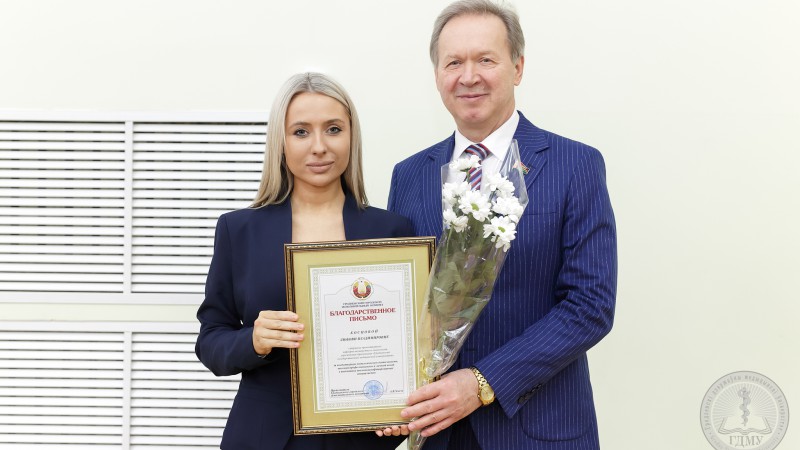 Благодарностью городского исполнительного комитета отмечены старший преподаватель кафедры акушерства и гинекологии Любовь Владимировна Косцова и ассистент кафедры анестезиологии и реаниматологии Дмитрий Николаевич Ракашевич.
