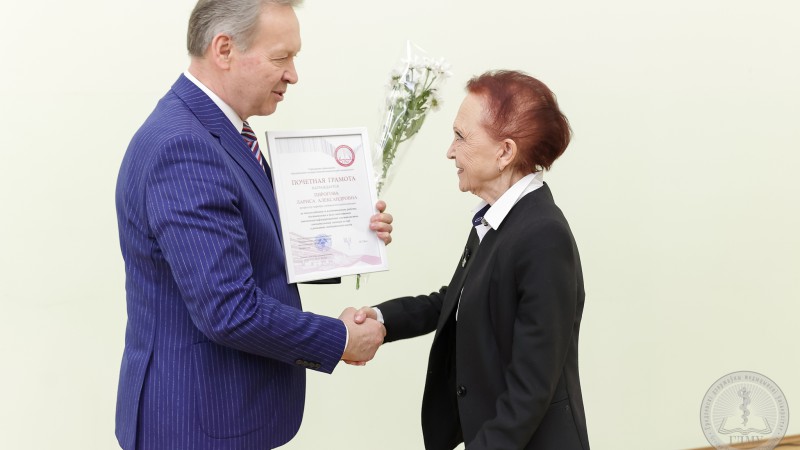 За многолетнюю и плодотворную работу, достижения в деле подготовки высококвалифицированных специалистов-медиков, значительный личный вклад в развитие университета Почетной грамотой учреждения образования «Гродненский государственный медицинский университет» награждена Пирогова Лариса Александровна, профессор кафедры медицинской реабилитации.