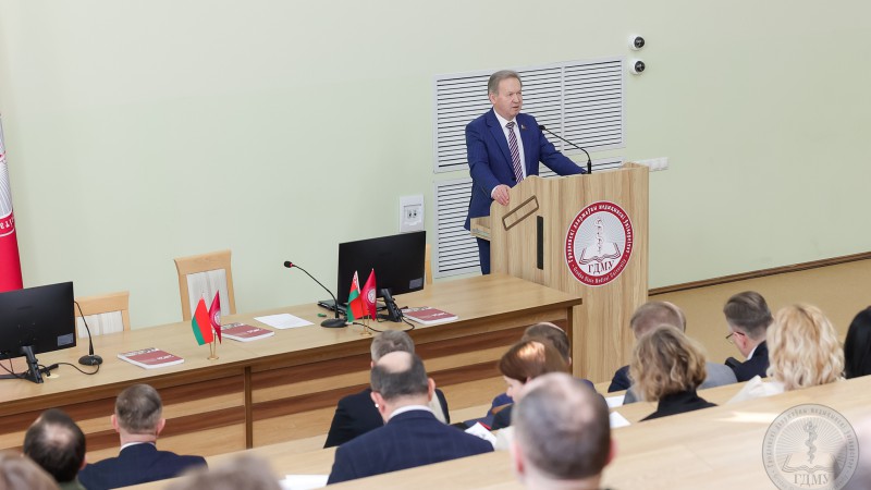 Спектр тем, поднятый во время выступления, был широким. В своем выступлении ректор затронул вопросы вступительной кампании минувшего года, обозначил план приема на 2025 год. Особый акцент – на проведении университетской олимпиады, которая ежегодно пользуется популярностью среди абитуриентов. Тема распределения выпускников также звучала особым блоком. Ректор подчеркнул, что Гродненский медуниверситет продолжает готовить высококвалифицированные кадры для практического здравоохранения страны.