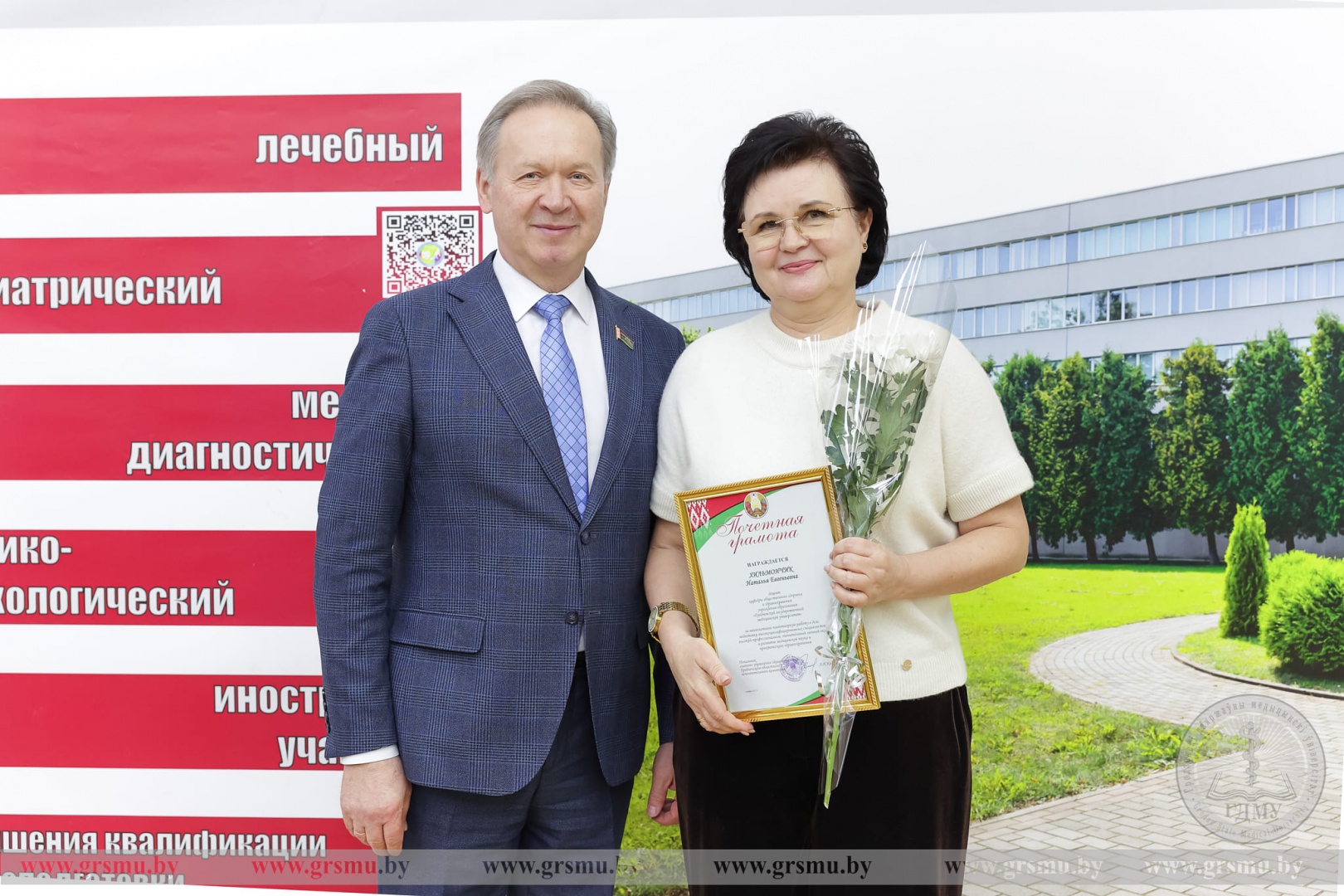 Ректор ГрГМУ Игорь Георгиевич Жук поблагодарил сотрудников за плодотворную работу и высокий профессионализм, а также пожелал им дальнейших успехов. Все награжденные получили грамоты и цветы от первичной профсоюзной организации сотрудников здравоохранения ГрГМУ.
