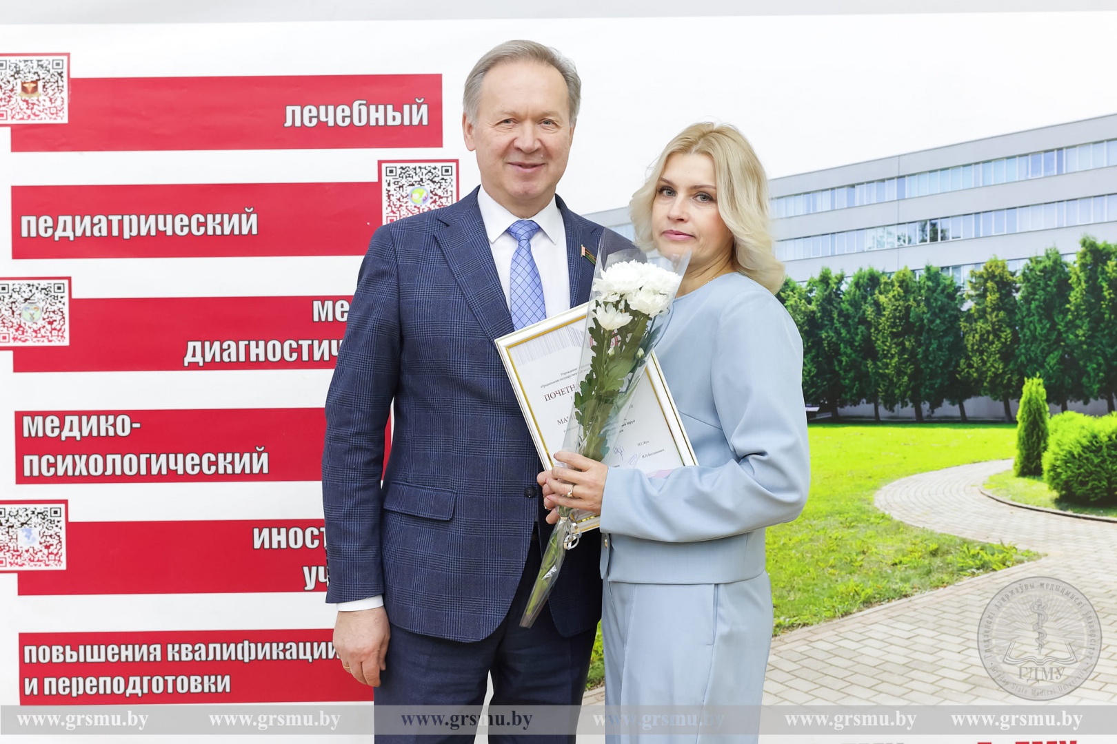 Почетная грамота учреждения образования «Гродненский государственный медицинский университет» была вручена Марине Геннадьевне Кобылянец, коменданту учебного корпуса.